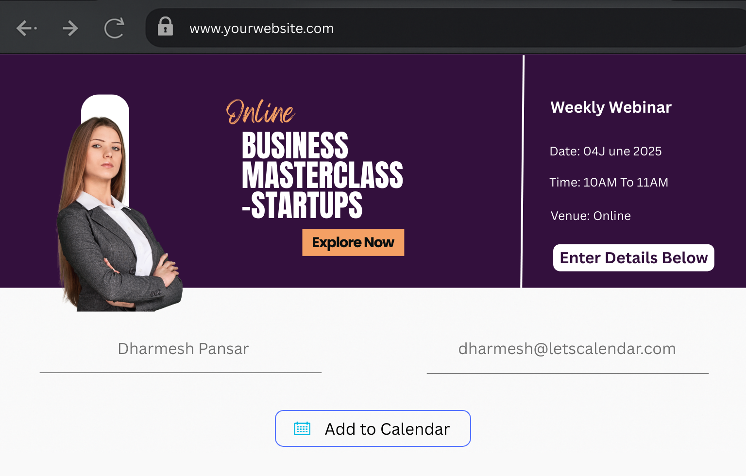 • Display a sleek, branded Add to Calendar button that lets visitors instantly add your event to their calendar